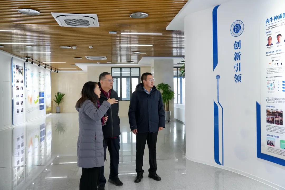 12月22日上午,调研组一行了解了学校近一时期发展建设成效,先后参观了草原家畜种质创新与繁育基地成果展示区、院士工作站及养殖基地等,考察了草原家畜种质创新与繁育基地在资源保存、遗传解析、良种繁育、营养调控、疫病防控及智慧养殖方面的科研成果与基本布局。